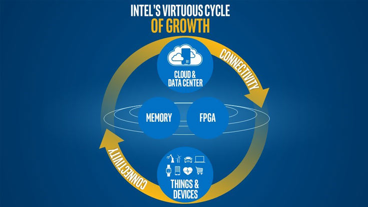 На сайте Intel опубликована статья, в которой генеральный директор Брайан Кржанич (Brian Krzanich) обозначает стратегию компании. По словам Кржанича, она заключается в трансформации Intel из компании, связанной с ПК, в компанию, которая снабжает «облако и миллиарды умных подключенных вычислительных устройств». Кроме того, глава компании делится пятью ключевыми убеждениями, которые, очевидно, связаны с приоритетными направлениями деятельности Intel.