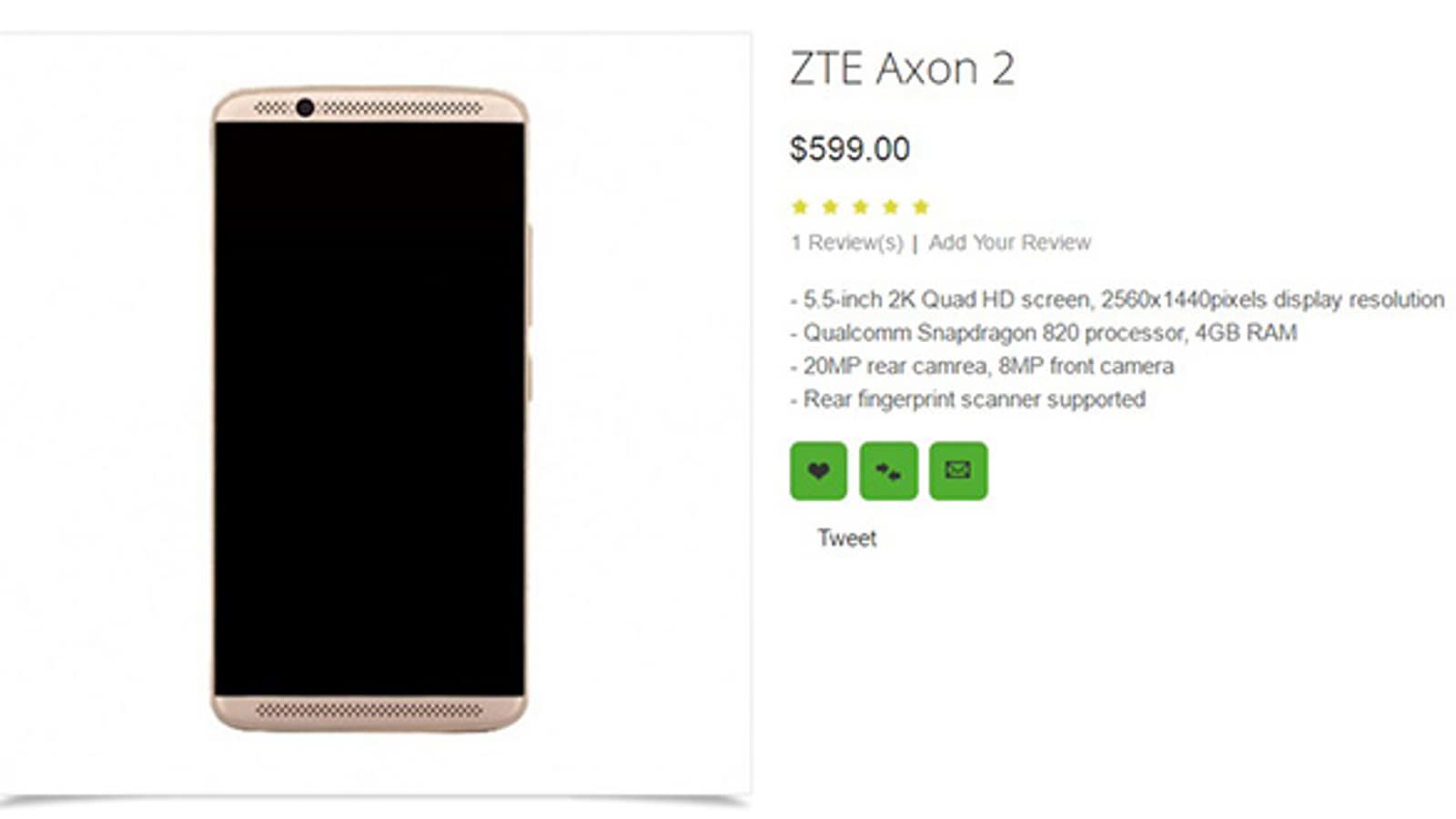 Напомним, что аппаратным базисом ZTE Axon 2 является SoC Qualcomm Snapdragon 820, а управление функциями возложено на ОС Android 6.0. Также в конфигурации устройства камеры разрешением 20 и 8 Мп и аккумуляторная батарея емкостью 3140 мА·ч.