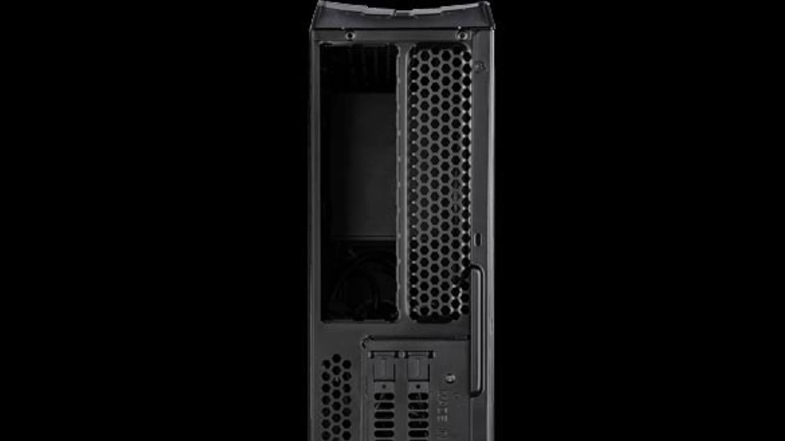 В корпусе установлено два 120-миллиметровых вентилятора: один — на верхней стенке, второй — на нижней. Они вращаются со скоростью 1500 об/мин, создавая шум 18 дБА. Рядом с нижним вентилятором есть место для еще одного такого же.