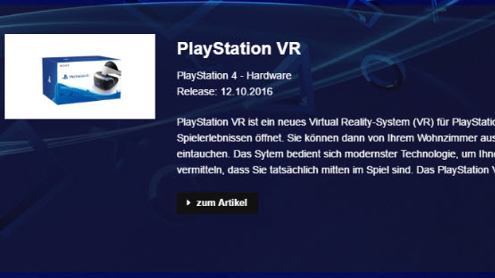 Немецкий портал PS Inside, ссылаясь на предназначенный для представителей прессы ресурс playstationfriends.de, утверждает, что PlayStation VR поступит в продажу 12 октября. Sony пока что не прокомментировала данную информацию.