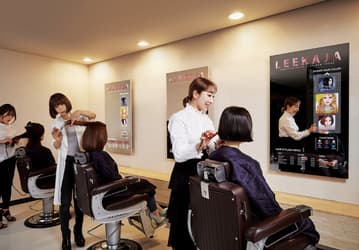 Зеркальные дисплеи диагональю 55 дюймов позволяют мастерам вместе с клиентами заняться экспериментами с прическами и подобрать цвет волос