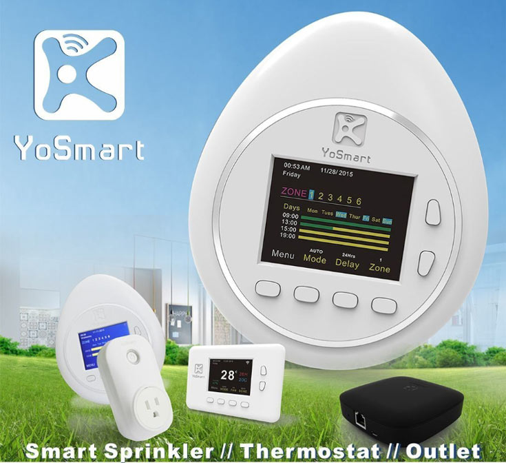 Термостат автоматически регулирует работу домашней климатической установки в соответствии с предпочтениями пользователя. Розетка дает возможность включать и выключать электроприборы удаленно или по расписанию. Разбрызгиватель позволяет организовать полив с учетом прогноза погоды, чтобы экономно расходовать воду. Четвертый компонент — концентратор YoSmart Hub, служит средством для обмена данными между устройствами и точкой выхода в интернет. Радиус беспроводного подключения YoSmart Hub достигает 600 м. Всеми устройствами YoSmart можно управлять удаленно с помощью компьютера или мобильного устройства с приложением YoSmart, доступным для iOS и Android.