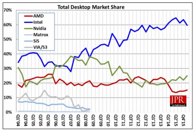 К основным причинам сокращения рынка ПК, которое вызвало сокращение рынка соответствующих графических решений, отнесено замедление экономики Китая и низкие цены на нефть. За год рынок ПК сократился на 10,60%, за квартал — на 15,07%.