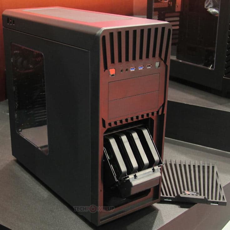 В большинстве компьютерных корпусов для замены накопителя необходимо снимать одну или обе боковые стенки. Но не в корпусе Rosewill Himars, показанном на снимке.