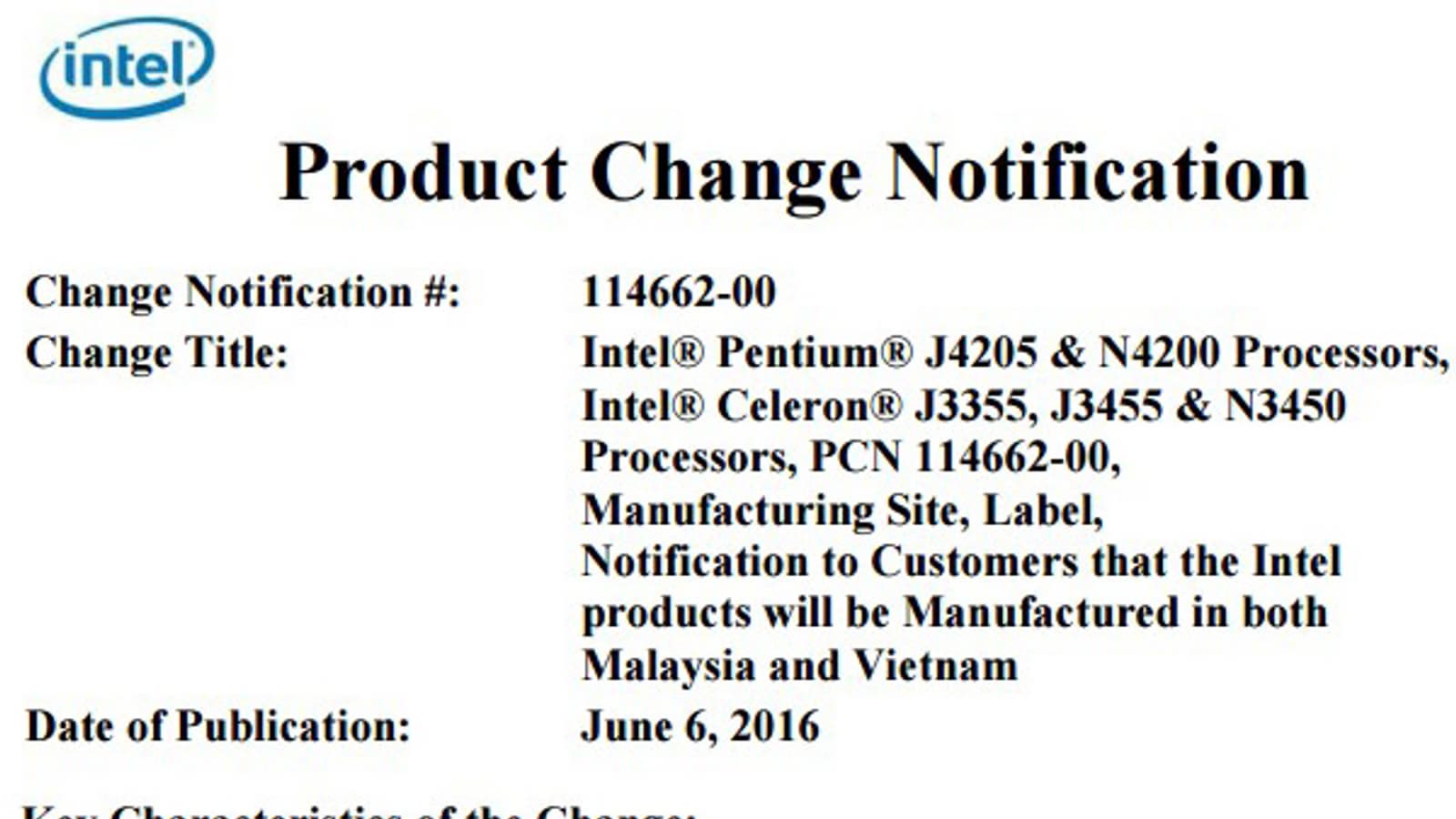 Компания Intel раскрыла обозначения первых представителей нового поколения бюджетных процессоров — Apollo Lake. Данные содержаться в извещении за номером 114662-00, опубликованным в базе данных Intel QDMS.