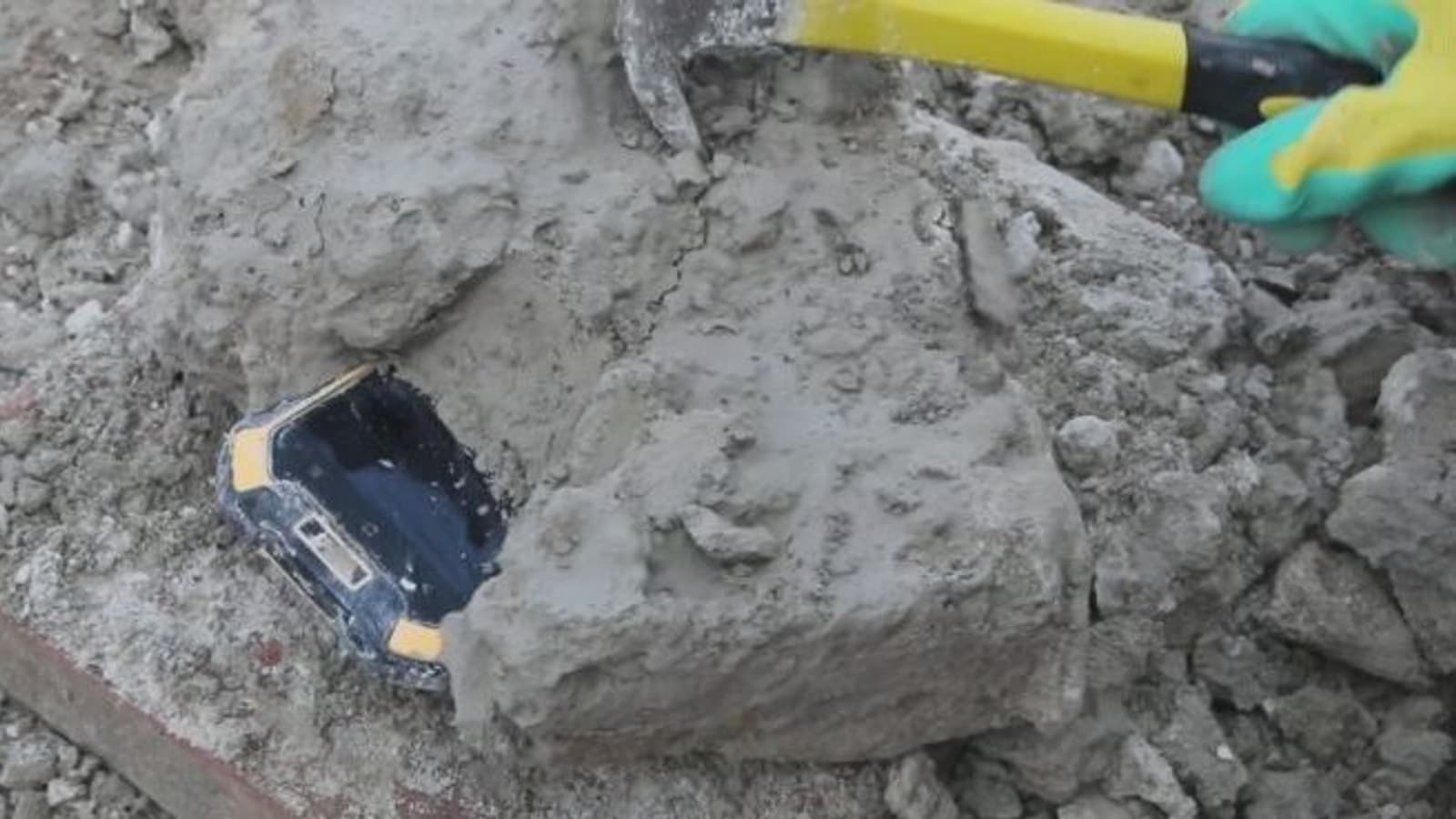 Чтобы продемонстрировать, насколько стойким является смартфон к внешним воздействиям, представители Blackview залили его цементным раствором, дали ему засохнуть, после чего достали смартфон при помощи молотка, не слишком беспокоясь о его сохранности.