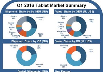 63% выручки на рынке планшетов по итогам первого квартала пришлось на Apple, Samsung и Microsoft