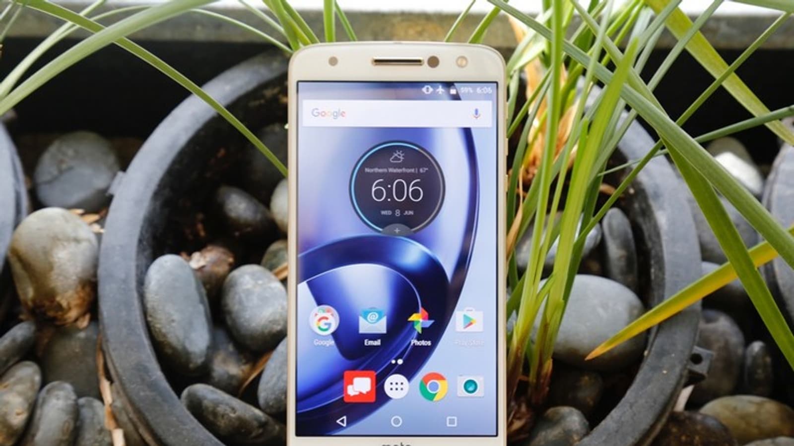 Основная камера разрешением 13 Мп (у Moto Z Force установлена камера разрешением 21 Мп) получила оптическую стабилизацию и лазерный помощник автофокуса. Значение максимальной диафрагмы составляет F/1.8. Фронтальная имеет разрешение 5 Мп и располагает собственной вспышкой. Также можно отметить порт USB-C, сканер отпечатков пальцев в кнопке под экраном и наличие водоотталкивающего покрытия. Масса аппарата — ещё одна его особенность. Она составляет всего 136 г, что необычно для достаточно крупного устройства. В целом габариты равны 155,3 х 75,3 х 5,19 мм.