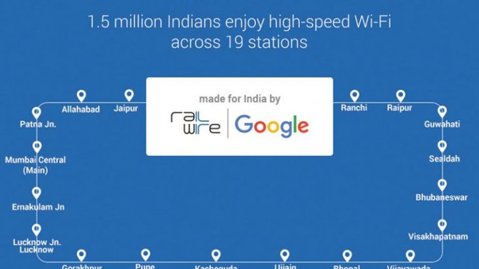 В декабре прошлого года Google пообещала до конца 2016 года обеспечить 100 железнодорожных вокзалов Индии бесплатным доступом к Сети. Уже через месяц поисковый гигант начал реализовывать обещанное, запустив проект на вокзале Mumbai Central.