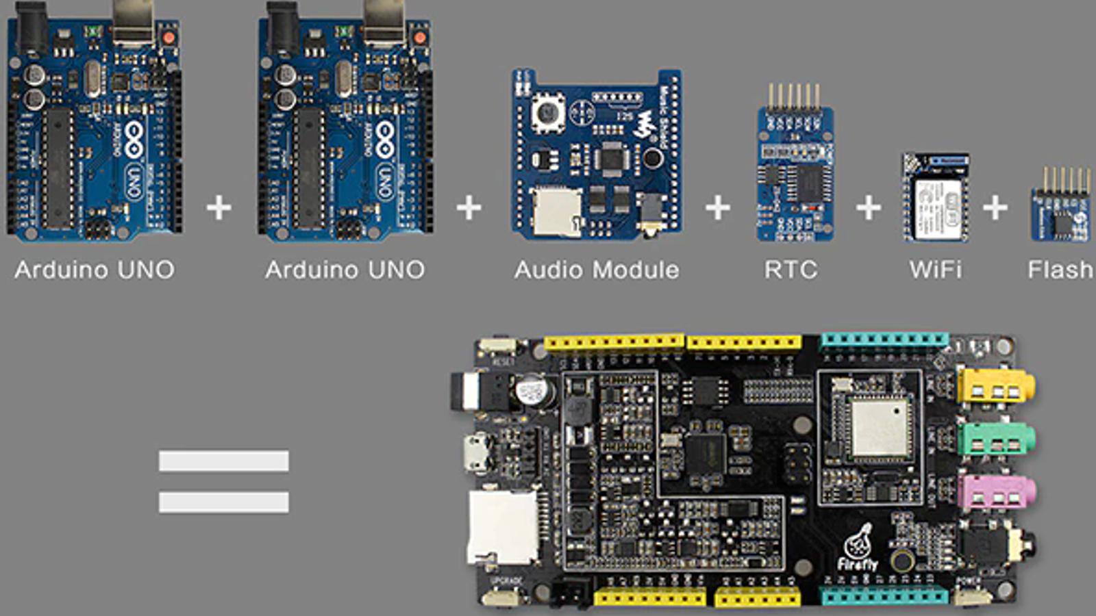 Команда разработчиков Firefly собирается выйти на портал Kickstarter с целью сбора средств на плату Fireduino. Она представлена как более функциональная замена для Arduino Uno, со встроенным таймером реального времени, аудиокодеком, беспроводным модулем Wi-Fi и флэш-памятью с интерфейсом SPI, объемом 4 или 8 МБ.