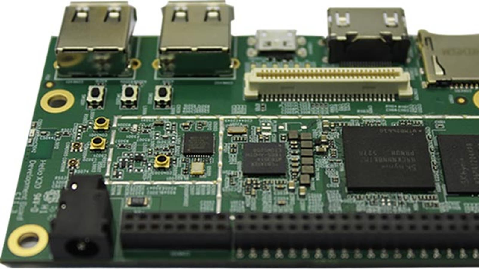 На плате есть слот microSD и выход HDMI, средства беспроводного подключения Wi-Fi 802.11 a/b/g/n и Bluetooth 4.1, приемник GPS, два порта USB 2.0 (хосты) и порт USB 2.0 (устройство, разъем micro-B), интерфейсы UART, I2C x2, SPI, GPIO x12, 4L-MIPI DSI, I2C x2, USB и 2L+4LMIPI CSI, 2 ГБ памяти LPDDR3, 8 ГБ флэш-памяти (EMMC5.1). Предусмотрено подключение гарнитуры.