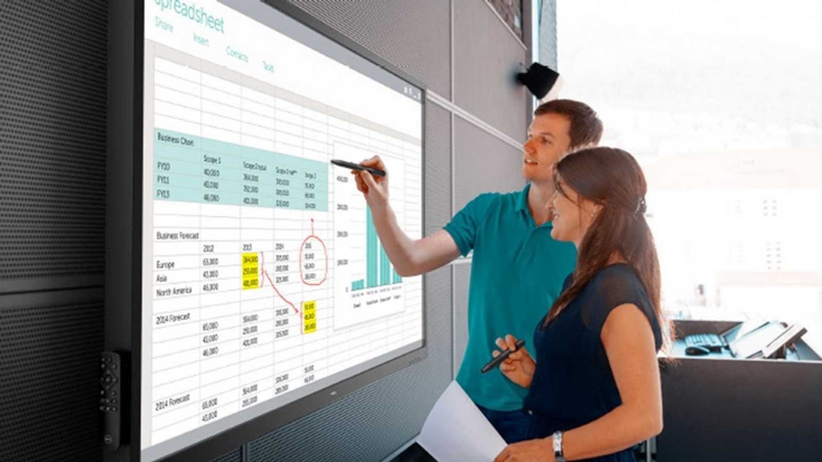 Дисплей характеризуется разрешением Full HD и распознаёт до десяти одновременных касаний. Кроме этого, он позволяет работать одновременно двумя цифровыми ручками. Для подключения источников имеется большой набор портов: HDMI (x3), DisplayPort и VGA. Также в активе разъёмы RS232, USB 3,0 (x4) и Ethernet.