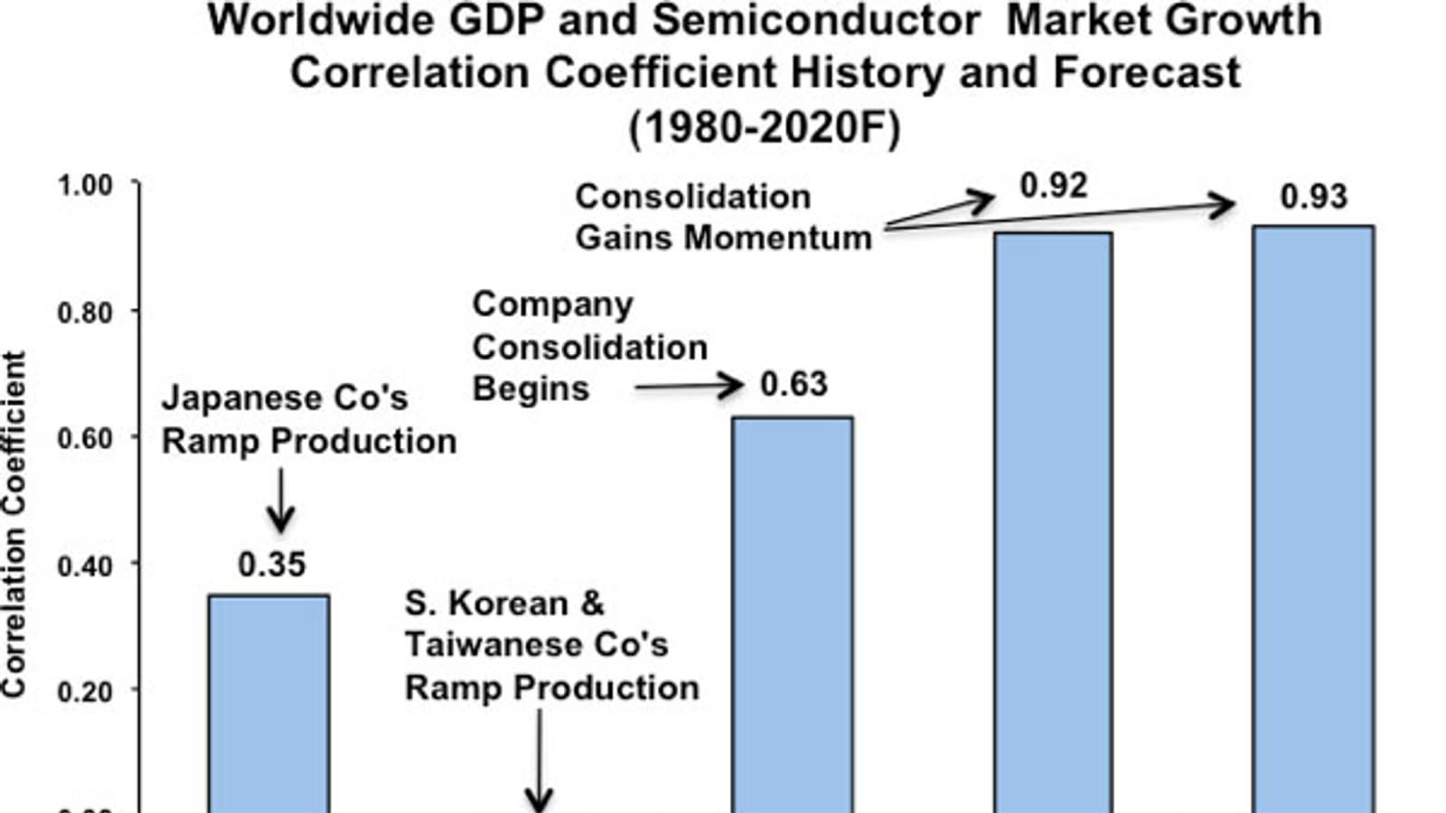 Одним из факторов, определяющих такое положение дел, аналитики называют ослабление мировой экономики. В IC Insights видят прямую связь между валовым внутренним продуктом и расходами на полупроводниковые изделия.
