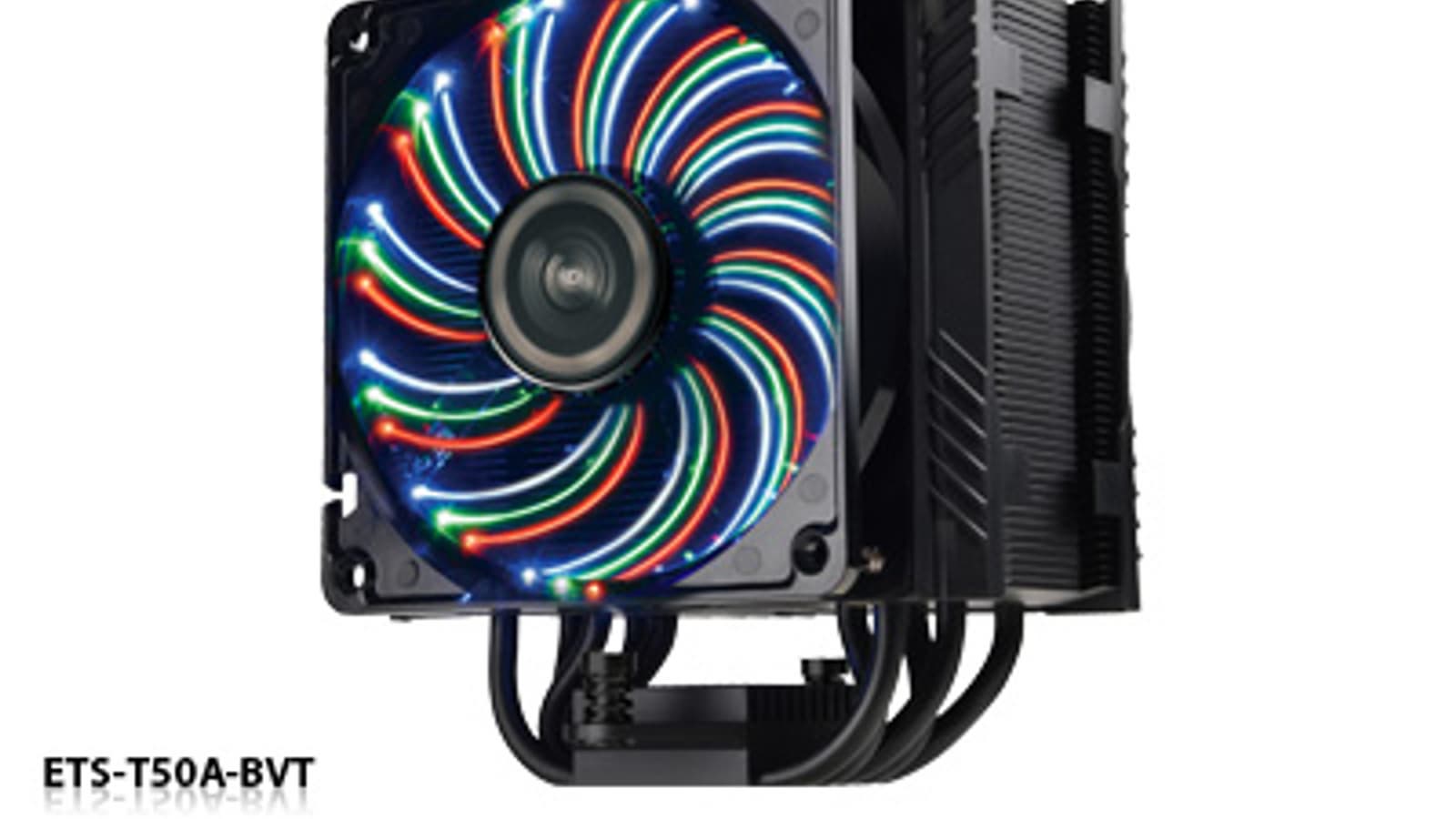 Представляя процессорный кулер ETS-T50 Axe, компания Enermax продолжает следовать моде на установку светодиодного освещения в свою продукцию. В модификации Enermax ETS-T50A-BVT на каждой лопасти вентилятора размещены три цепочки из синих, красных и зеленых светодиодов, которые можно включать по отдельности, вместе, или вовсе отключать. Версия ETS-T50A-WVS отличается белым цветом корпуса и подсветки, которая может переключаться между несколькими режимами световых эффектов.