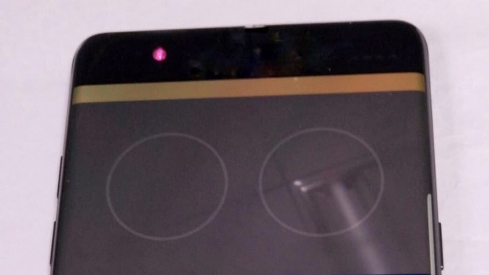 Первые две фотографии демонстрируют процесс калибровки сканера радужной оболочки, третье изображение запечатлело стартовый экран, который отображается при включении смартфона.