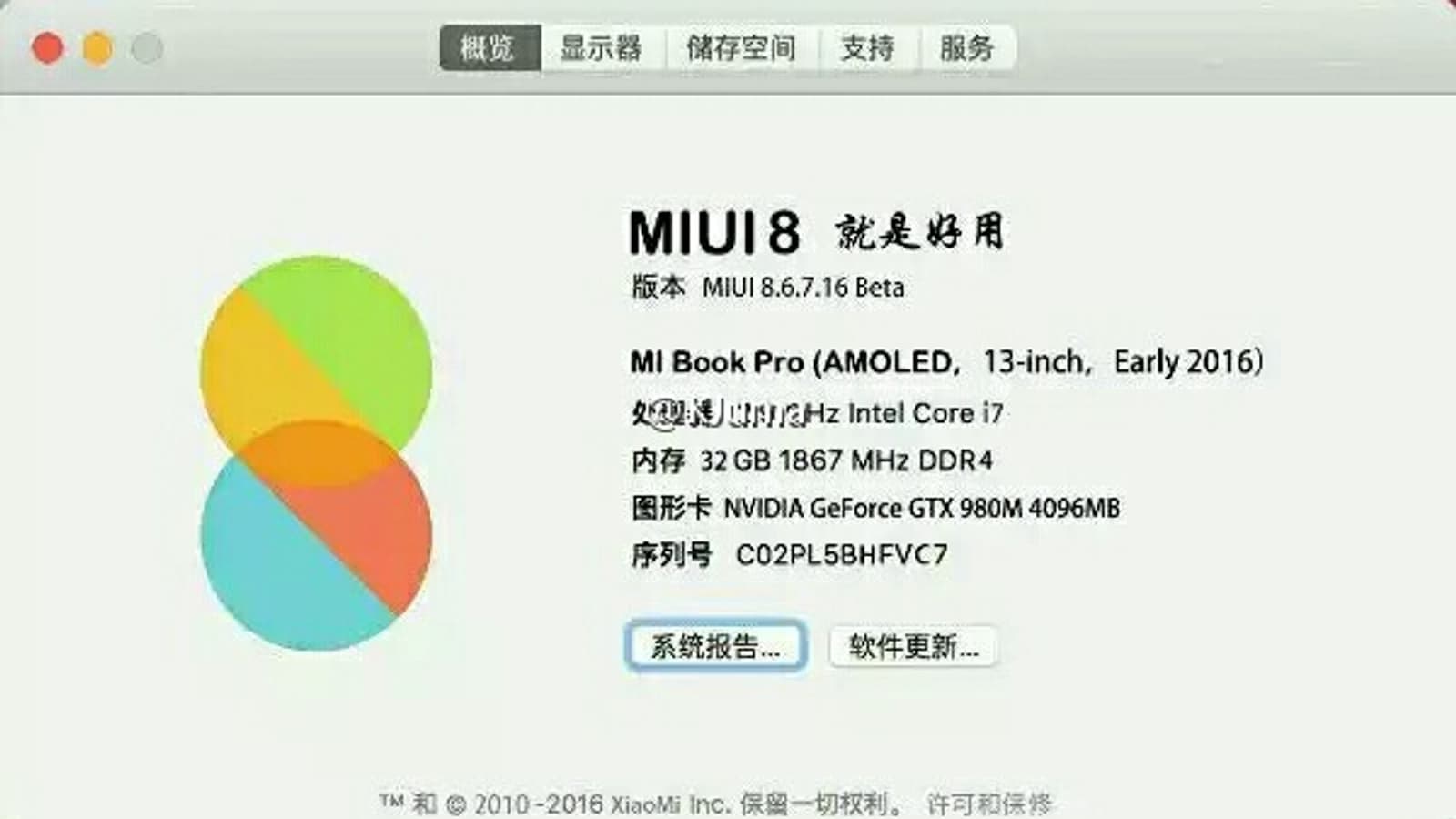 В Сети появляются новые слухи о ноутбуках Xiaomi. На сей раз источник приводит снимок экрана с характеристиками флагманской модели под названием Mi Book Pro. Судя по нему, лэптоп действительно получил ОС на ядре Linux (с интерфейсом MIUI 8), дисплей AMOLED, 32 ГБ оперативной памяти, процессор Intel Core i7 и 3D-карту Nvidia GeForce GTX 980M с 4 ГБ собственной памяти.
