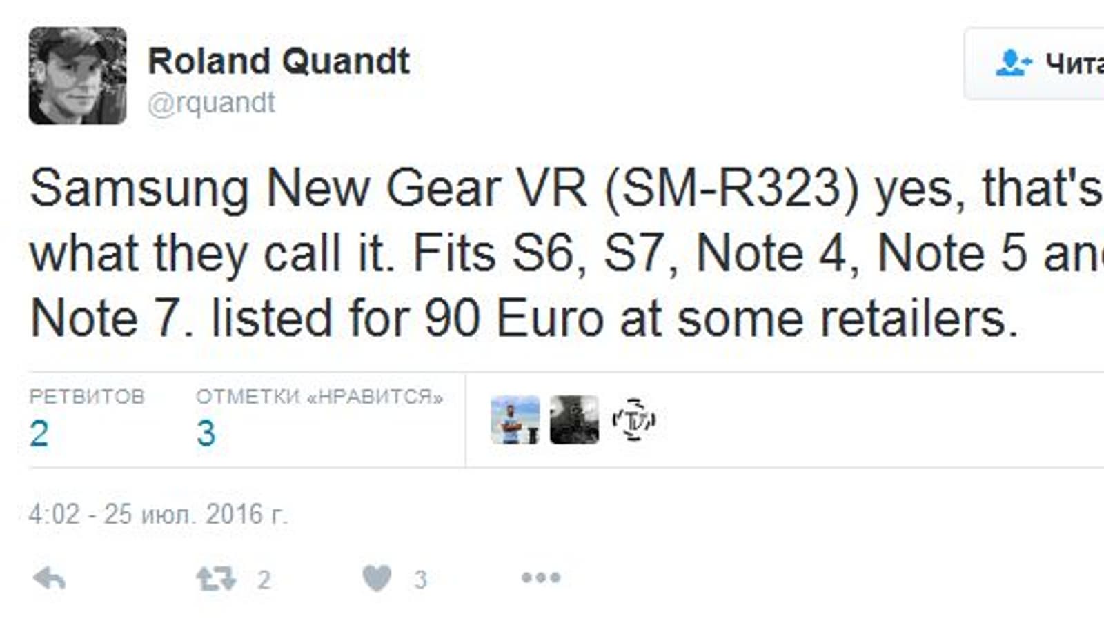 Кроме того, SM-R323 поддерживает смартфоны Galaxy S6, S7, Note 4 и Note5. В Европе новинка уже начала появляться в ценниках торговых предприятий. Как утверждается, она стоит 90 евро.