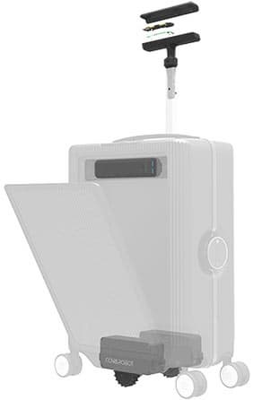 Чемодан оборудован умным замком, сигнализацией, срабатывающей при удалении от пользователя, и приемником GPS, позволяющим отыскать забытый или утерянный багаж. Стоит отметить наличие отделения для электронных устройств со встроенным зарядным устройством. Для управления умными замками, записи маршрута и выполнения других функций служит мобильное приложение.