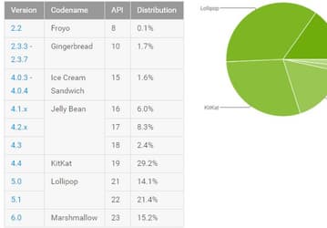 Доля ОС Android 6.0 Marshmallow превысила 15%