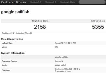 Смартфон Google Nexus 2016 (Sailfish) замечен в базе данных Geekbench