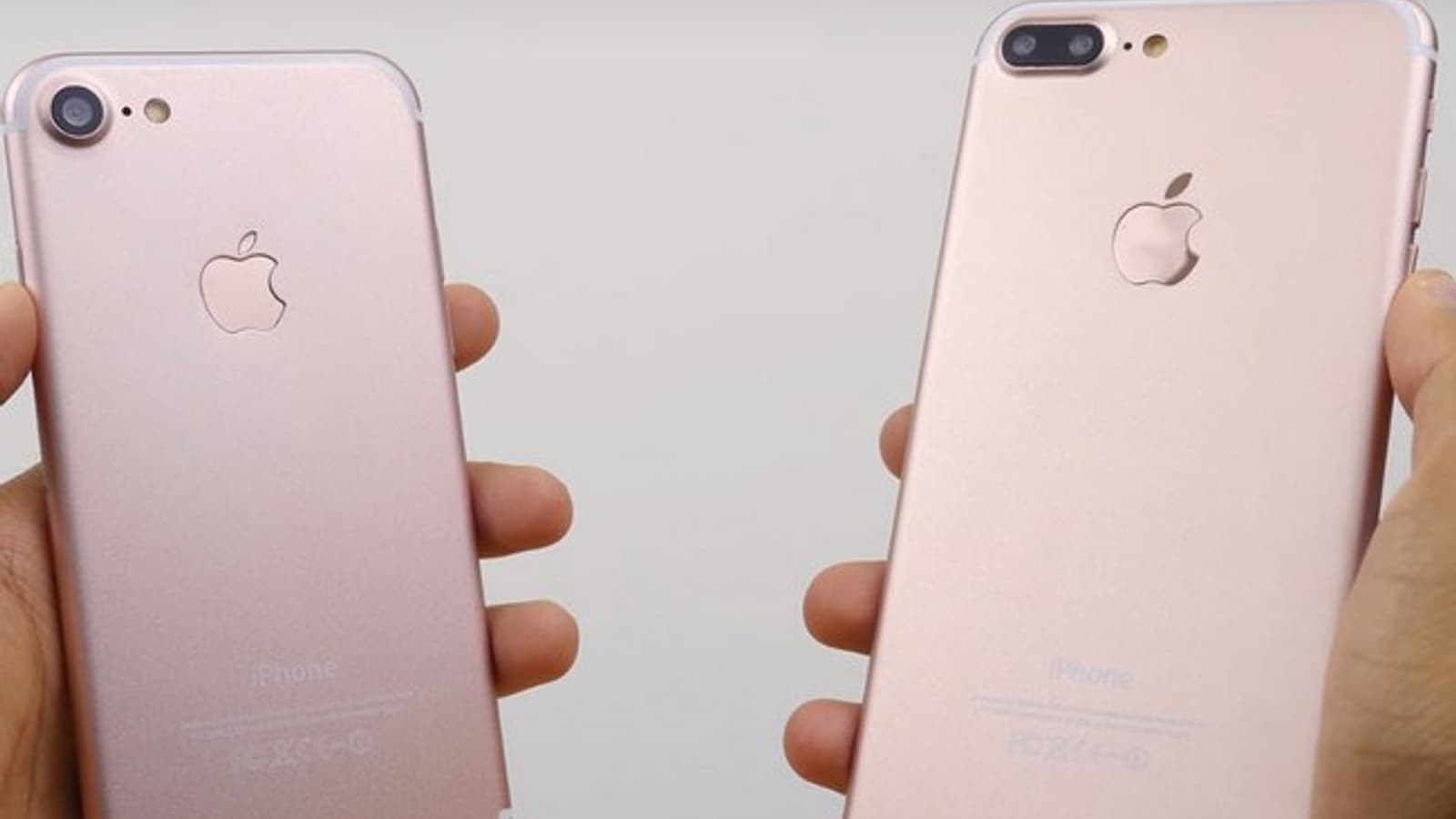 Нам вновь демонстрируют одиночную камеру младшей модели и сдвоенный модуль, которым оснащен смартфон iPhone 7 Plus, изогнутые полоски антенн на задней панели, отсутствие разъема 3,5 мм. На нижней грани расположены две решетки, одна из которых может оказаться декоративной. Кнопка Home осталась физической.