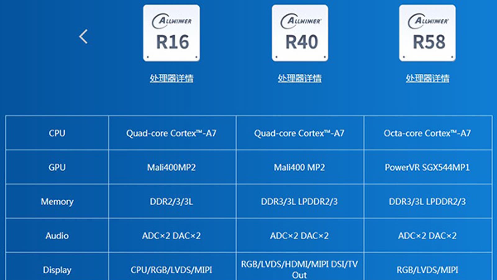 Ассортимент однокристальных систем компании Allwinner Technology пополнился тремя новыми моделями: Allwinner R16, R40 и R58. Первая предназначена для использования в устройствах интернета вещей, вторая подходит для использования в широком спектре изделий — от ТВ-приставок до смартфонов, ну а R58 может применяться в планшетах и устройствах категории 2-в-1.