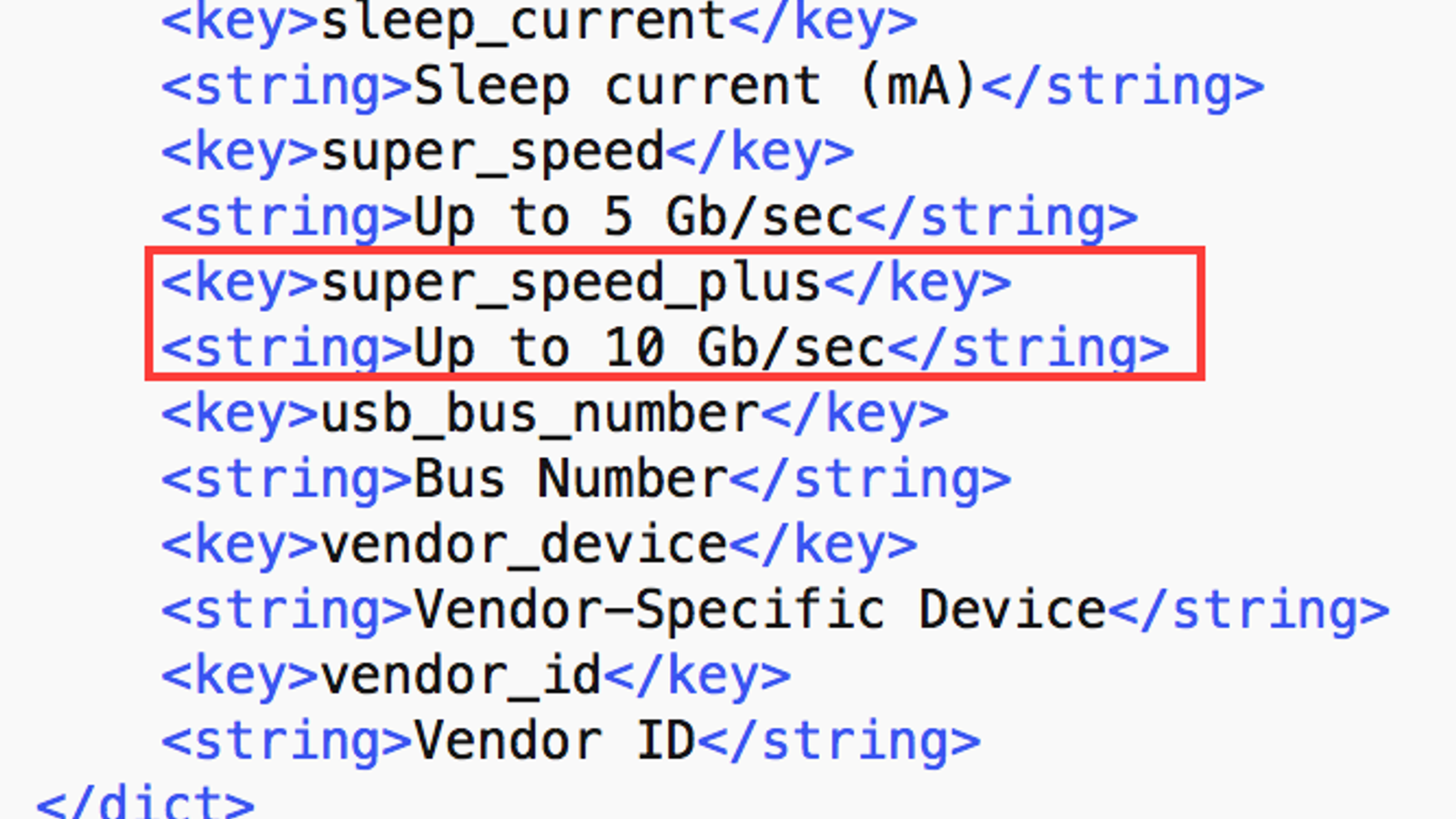 Издание 9to5Mac обнаружило в коде macOS Sierra несколько строчек с фразами Super Speed Plus и Up to 10Gb/sec, которые явно указывают на интерфейс USB 3.1 Gen 2. Представленные на рынке компьютеры Mac и операционная система OS X El Capitan поддерживают USB 3.1 первого поколения с максимальной скоростью передачи данных до 5 Гбит/с. Очевидно, что Applе планирует добавить разъемы USB 3.1 Gen 2 в свои новые Mac.