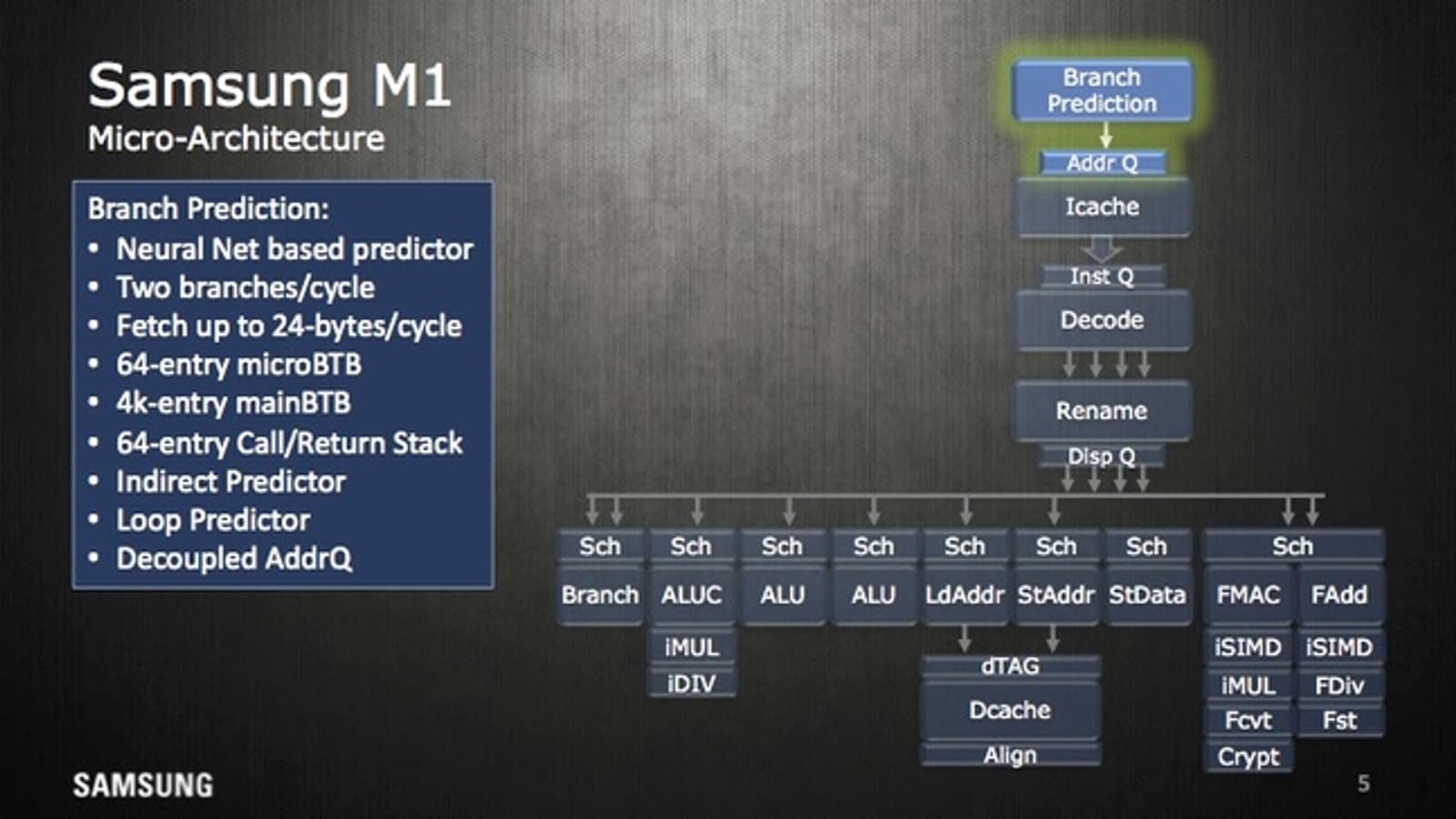Отдельного внимания заслуживает блок предсказания ветвлений, который, как утверждает Samsung, в данном случае построен по принципу нейронной сети.