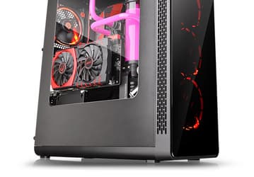 Прозрачное окно компьютерного корпуса Thermaltake View 27 Gull-Wing переходит с боковой стенки на верхнюю