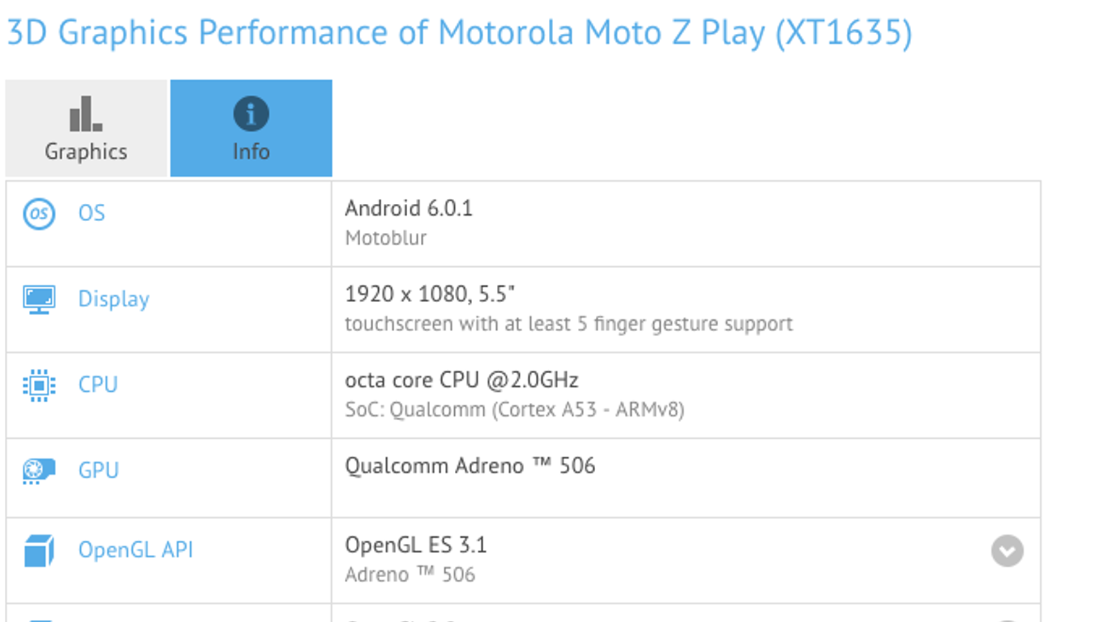 Источник обнаружил в базе данных теста GFXBench информацию о смартфоне Motorola Moto Z Play, подтверждающую предварительные сведения об этом устройстве.