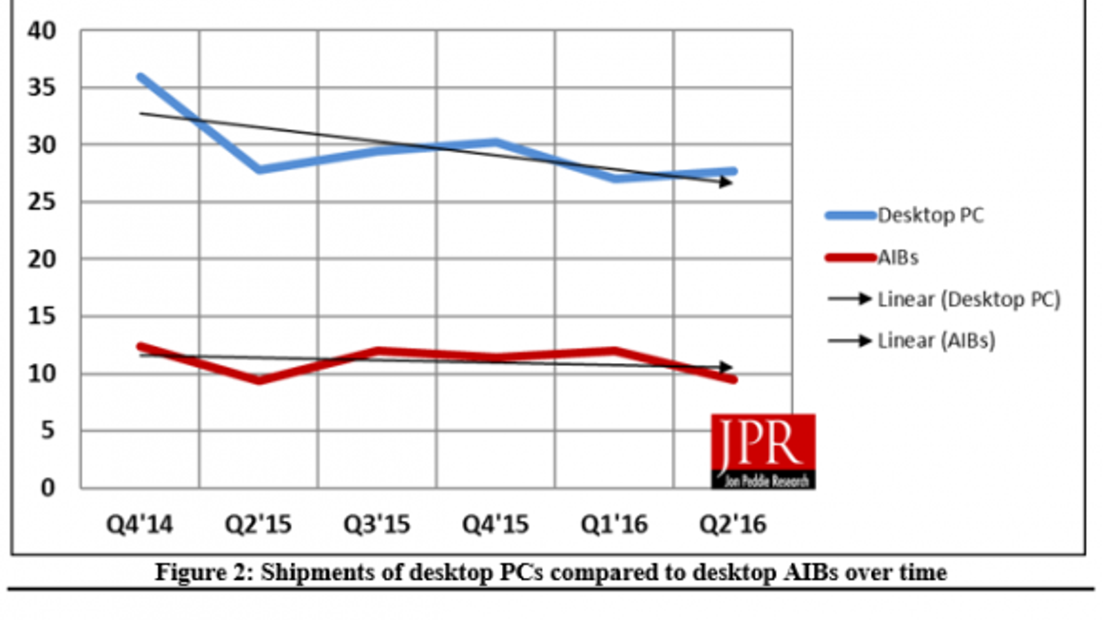 Аналитики отмечают сохраняющуюся тенденцию уменьшения количества графических решений (дискретных и интегрированных) по отношению к общему количеству ПК. Если в 2008 году графических решений было отгружено на 63% больше, чем ПК, в минувшем квартале этот показатель составил всего 34%. Это может быть объяснено возросшими возможностями встроенных GPU и уменьшением интереса к конфигурациям с несколькими GPU, работающими в режимах AMD CrossFire или Nvidia SLI.