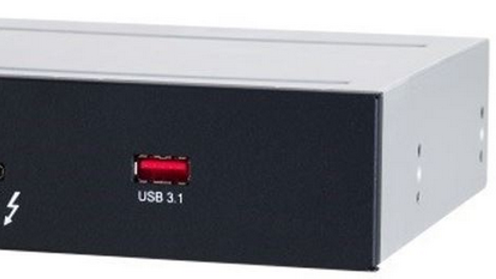 Во-вторых, Gigabyte представила первый в мире, по заявлению компании, модуль с портом Thunderbolt 3, устанавливаемый в отсек для устройств формата 5,25 дюйма. GP-TBT3 Bay оснащён одним портом USB-C 3.1 с поддержкой Thunderbolt 3 и одним USB 3.1. Причём первый в данном случае соответствует спецификациям Power Delivery 2.0, то есть позволяет передавать до 100 Вт мощности.