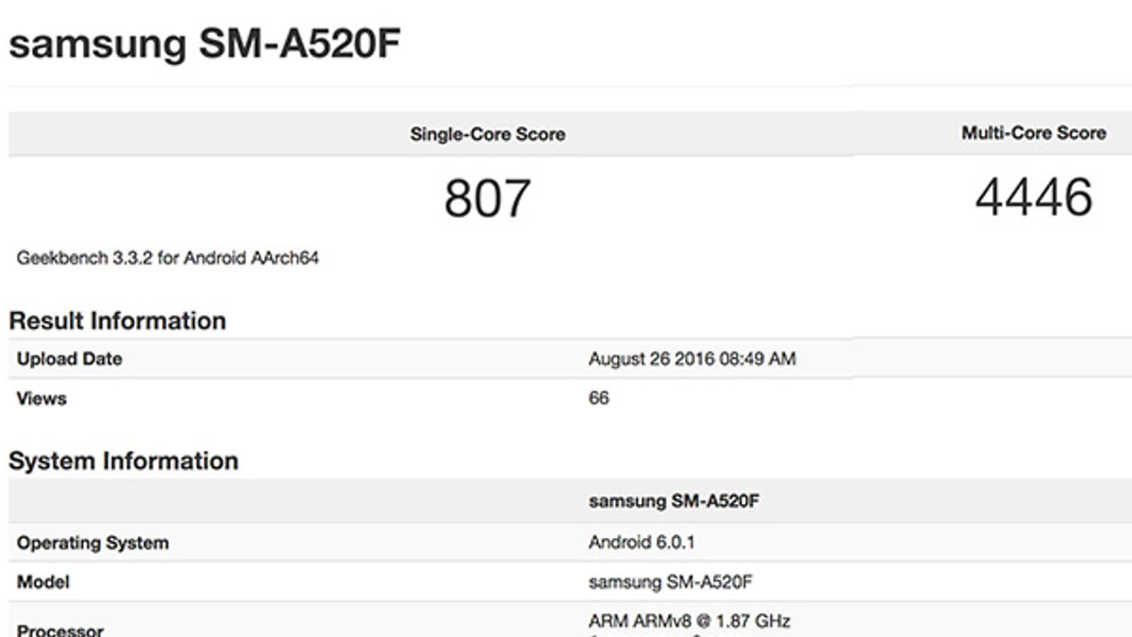 Смартфон Samsung Galaxy A5 уже пережил одно обновление, а в скором времени переживет и второе: новая версия с индексом SM-A520F уже засветилась в двух бенчмарках — Geekbench и GFXBench, соответствующие скриншоты приводит источник.