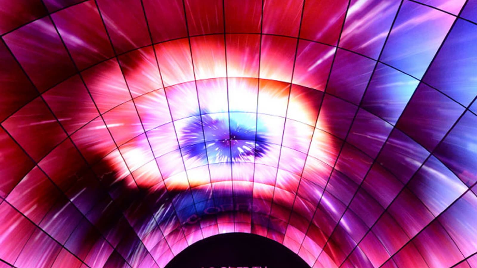 Создание масштабной конструкции стало возможно благодаря малой массе и толщине панелей OLED, а также их гибкости. Равномерно высокое качество изображения на изогнутой поверхности тоннеля обеспечено глубоким черным цветом, высочайшей контрастностью и широкими углами обзора.