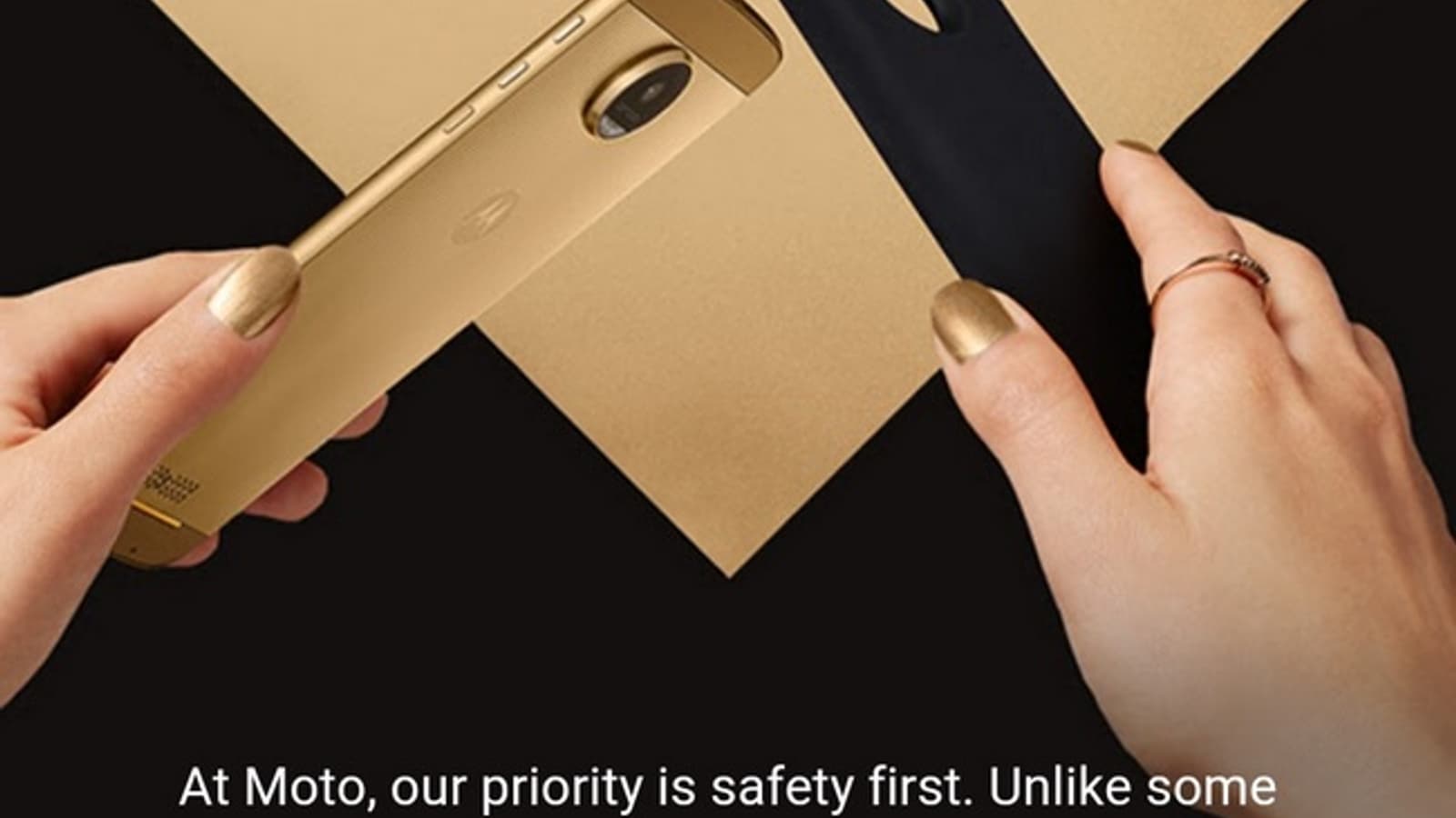 На опубликованном рекламном изображении смартфона Moto Z Droid говорится о том, что безопасность для создателей смартфонов этого бренда является главным приоритетом. «В отличие от некоторых производителей» Moto использует высочайшие стандарты качества и тестирует аккумуляторы всех своих устройств.
