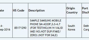 В базе данных Zauba замечен смартфон Samsung Galaxy A3 (2017)