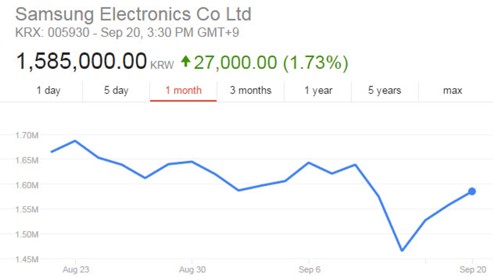 Согласно свежим данным, компания Samsung потратит на замену аккумуляторов в проданных смартфонах Samsung Galaxy Note7 около 1,5 млрд долларов. Что касается рыночной стоимости кампании, которая обвалилась после появления новостей о взрывающихся аккумуляторах, то, как видно на графике, она начала восстанавливаться.