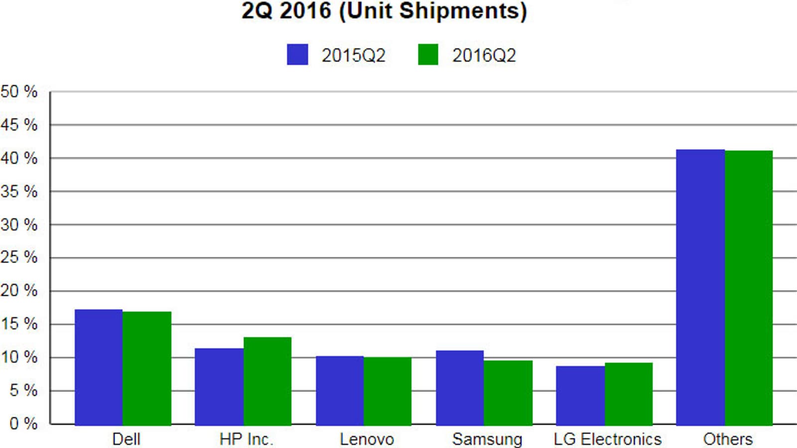 Второе место занимает компания HP, за квартал отгрузившая 4,0 млн мониторов, что соответствует 13,0% рынка. Год назад доля HP составляла 11,4%.