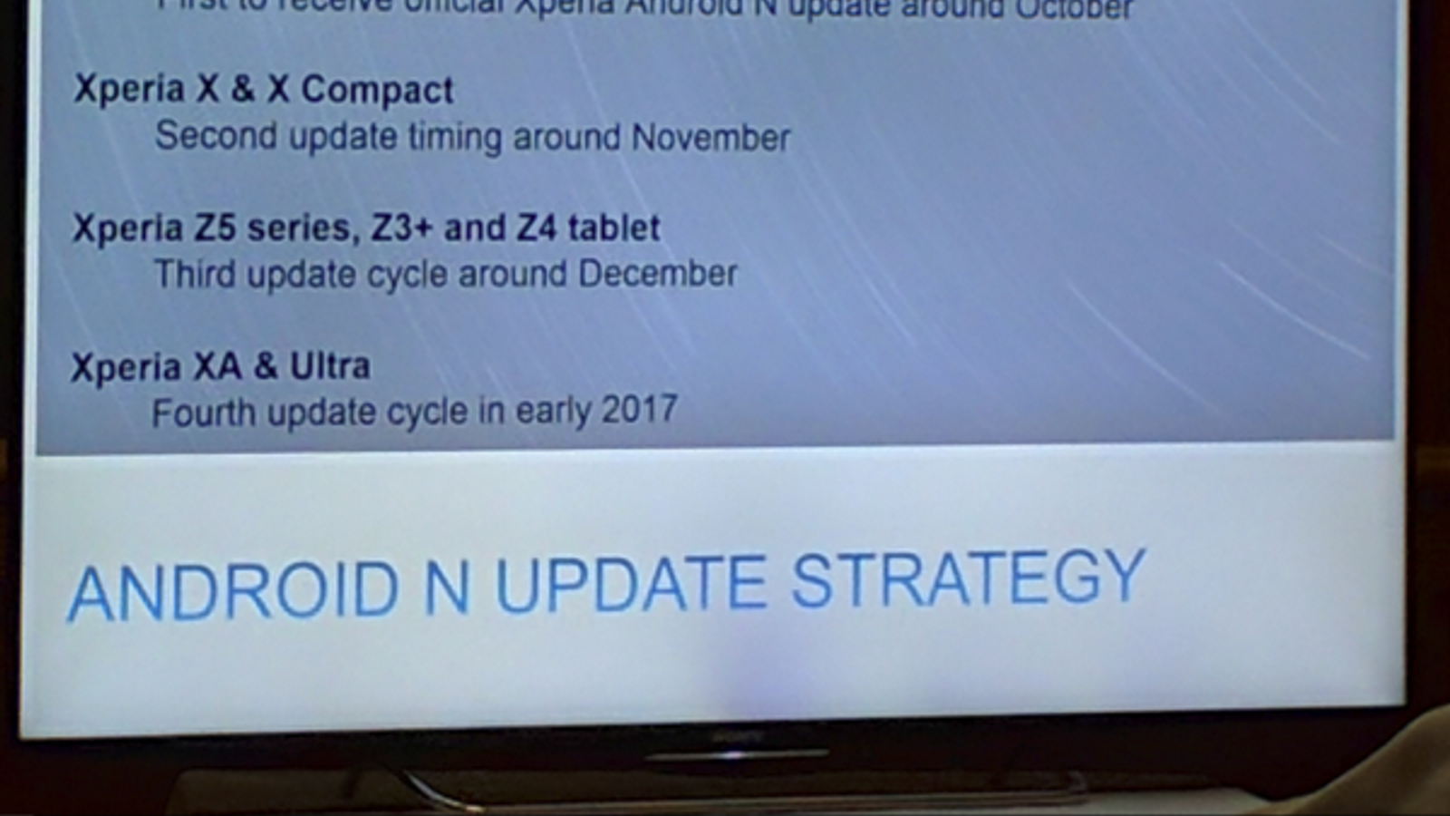 В ходе внутренней презентации, которую провело подразделение Sony Slovakia на этой неделе, анонимный сотрудник компании сделал фотографию графика выпуска обновлений Android 7.0 Nougat для смартфонов Sony.
