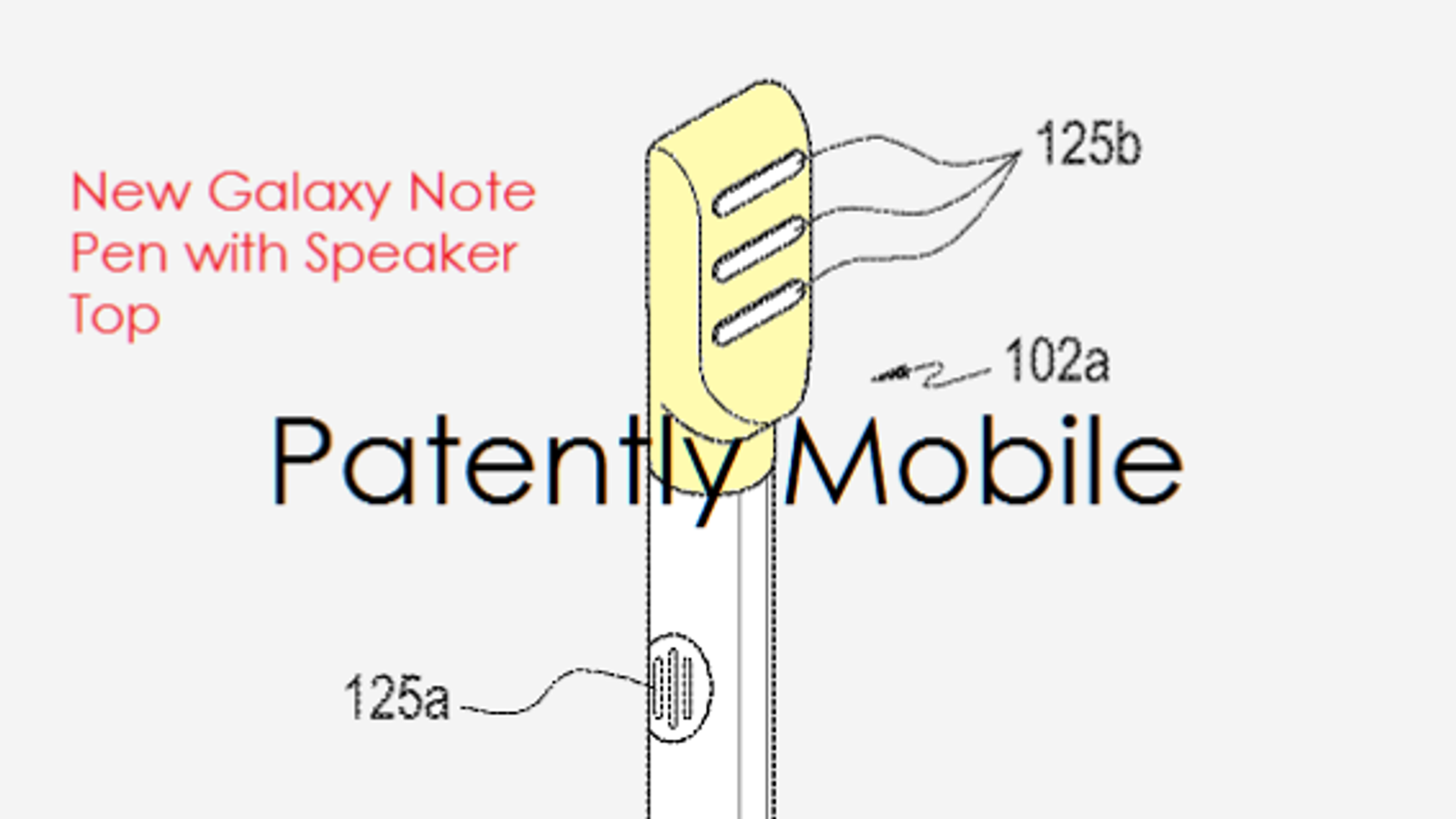 В этом патенте описывается стилус нового поколения планшетофона Samsung Galaxy Note, на одном конце которого располагается громкоговоритель. Когда электронное перо находится на своем месте в корпусе смартфона, звук от внутреннего источника передается через стилус на его громкоговоритель.