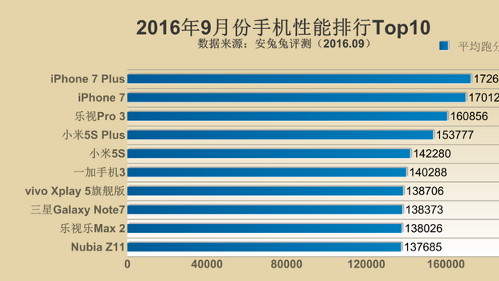 Первое место с 172644 баллами занял смартфон Apple iPhone 7 Plus, следом за ним идет iPhone 7 с 170124 баллами. Оба смартфона используют новую однокристальную систему A10 Fusion.