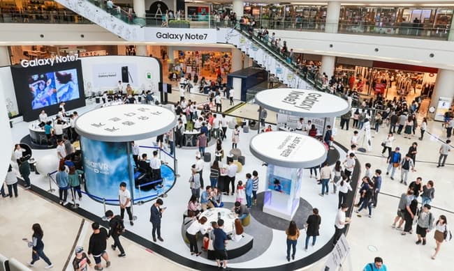 30 сентября Samsung открыла в нескольких торговых центрах специальные зоны, посетители которых могут ознакомиться с возможностями нового смартфона, опробовать камеру, стилус, сканер радужной оболочки глаза.
