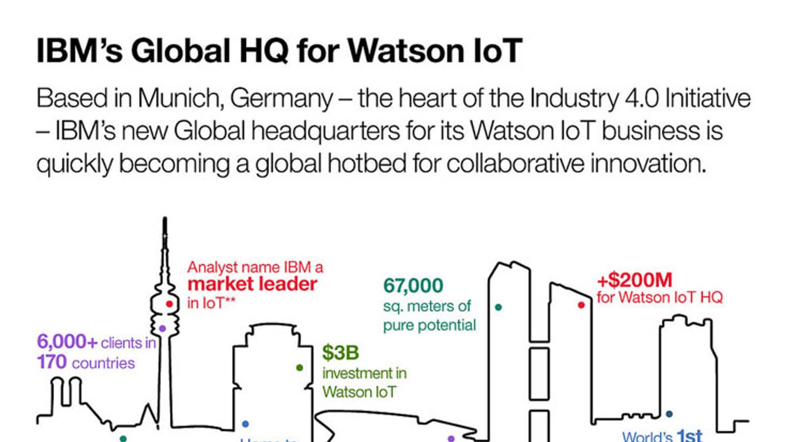 Компания IBM, в прошлом году открывшая в Европе несколько офисов IBM Studio, намерена разместить в Мюнхене новую глобальную штаб-квартиру бизнес-подразделения Watson Internet of Things (IoT). На это решено выделить более 200 млн долларов.