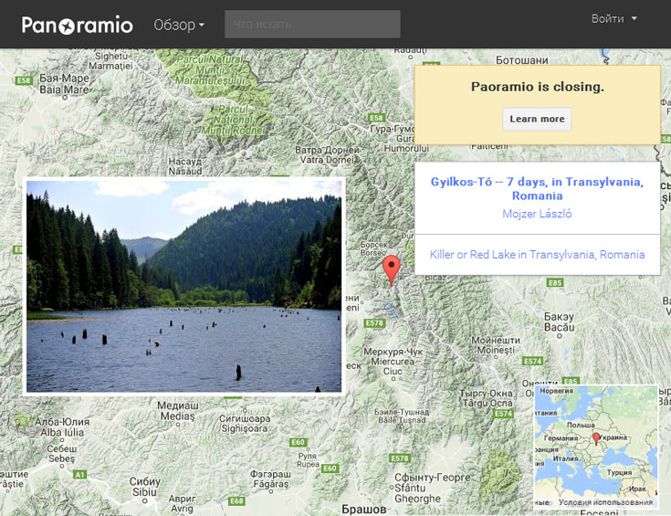 Компания Google сообщила о закрытии бесплатного сервиса Panoramio, позволяющего публиковать фотографии с привязкой к координатам на картах Google Maps. О намерении закрыть Panoramio поисковый гигант сообщил еще в 2014 году, но реакция пользователей заставила его отложить этот шаг.
