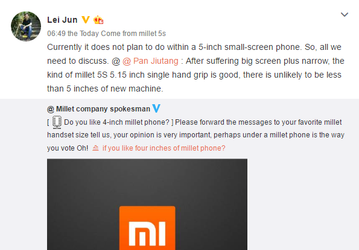 У Xiaomi нет планов по выпуску компактного смартфона с экраном диагональю менее пяти дюймов