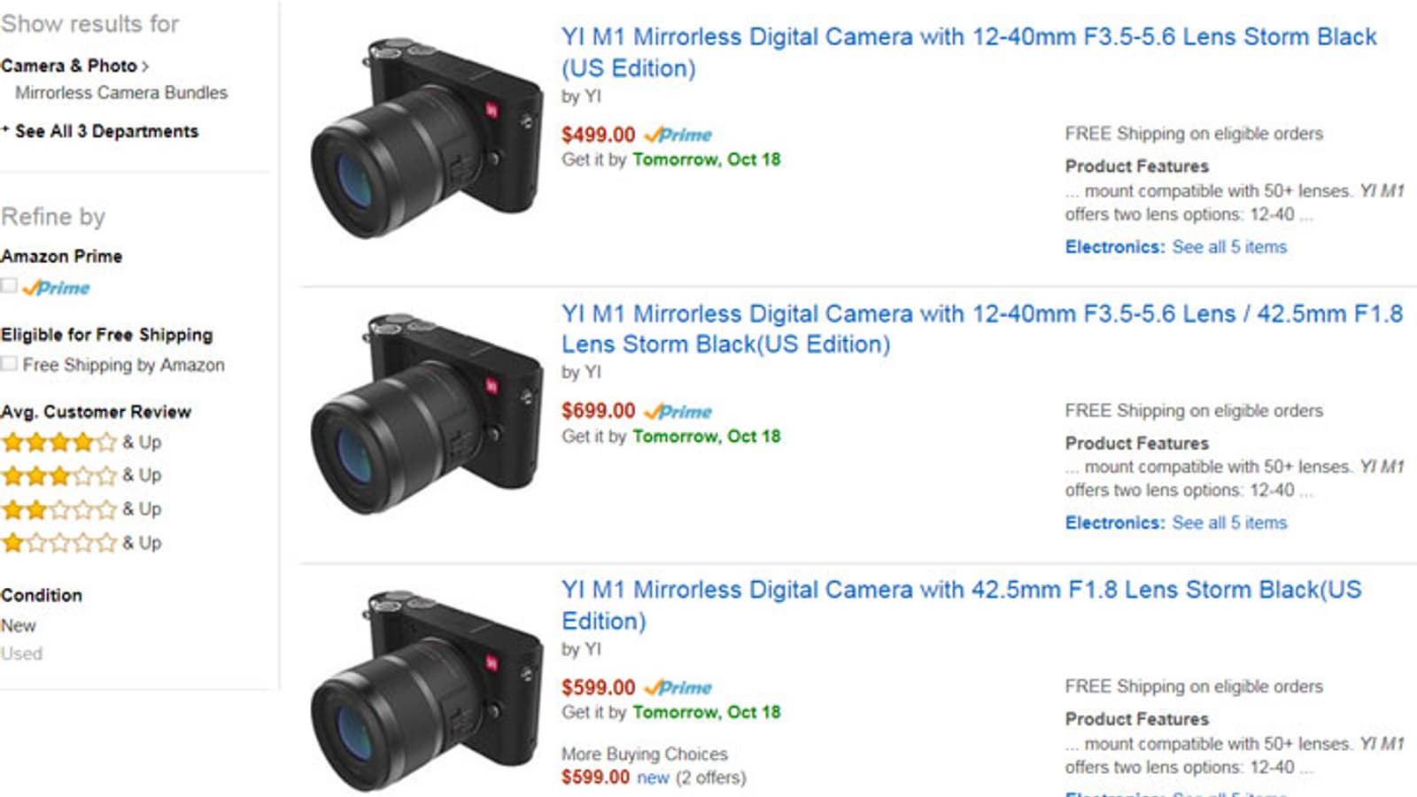 Компания YI Technology объявила о начале продаж представленной в сентябре беззеркальной камеры Yi M1. Новинку уже можно приобрести в онлайновом магазине Amazon. В связи с этим появилась уточненная информация о ценах.