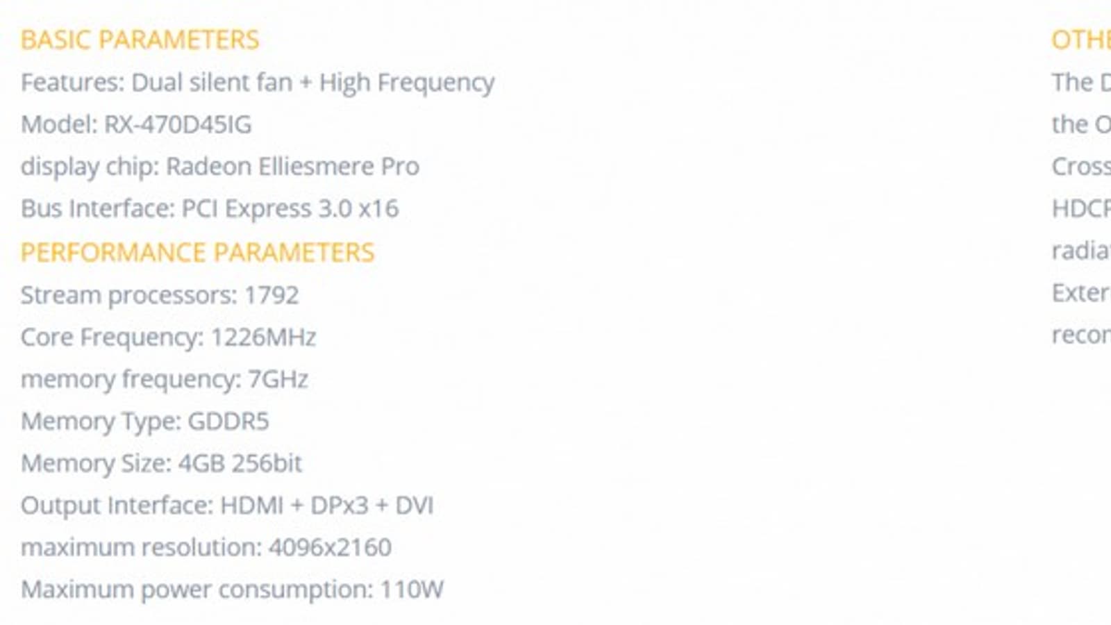 Второй источник называет карту Radeon RX 470 SE и утверждает, что она содержит 1536 потоковых процессоров, 96 текстурных блоков, 24 блока растровых операций и характеризуется TDP 90 Вт.