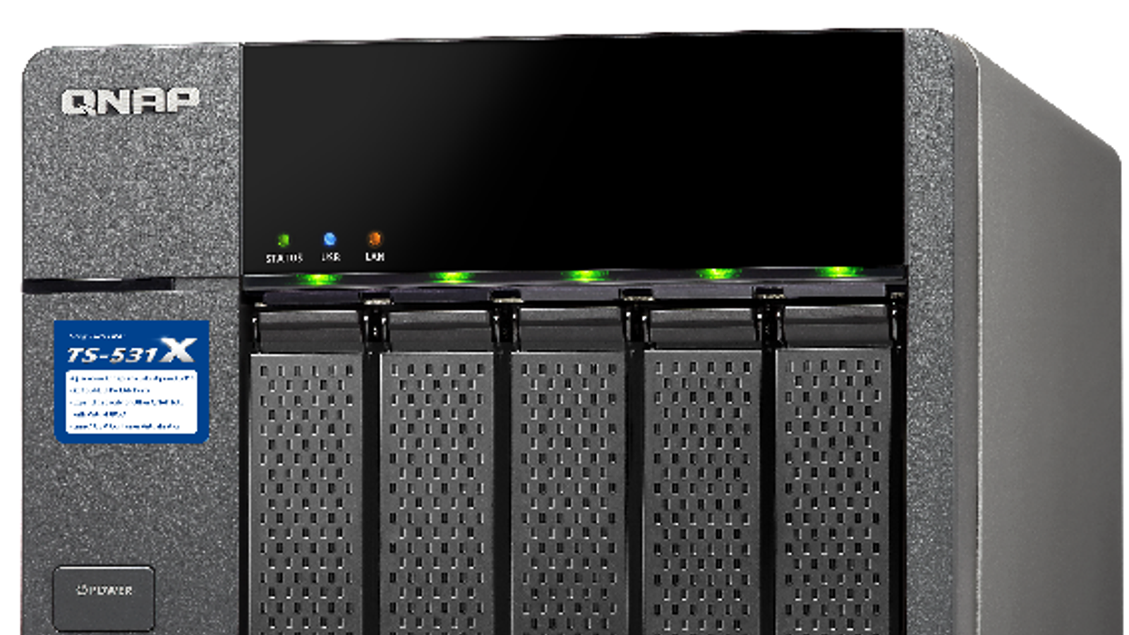 Имеются три порта USB 3.0, встроенный блок питания ATX обеспечивает мощность до 240 Вт (при потреблении всей системы 15-30 Вт) и рассчитан на широкий диапазон питающих напряжений 100-240 В. Охлаждение поручено вентилятору типоразмера 12 см. Объем дискового пространства можно наращивать вплоть до 210 ТБ подключением дополнительных дисковых хранилищ UX-800P и UX-500P. Поставки NAS Qnap TS-531X уже начались, хотя оно еще ожидается в продаже.