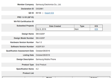 Смартфон Samsung Galaxy A3 (2017) прошел сертификацию Bluetooth