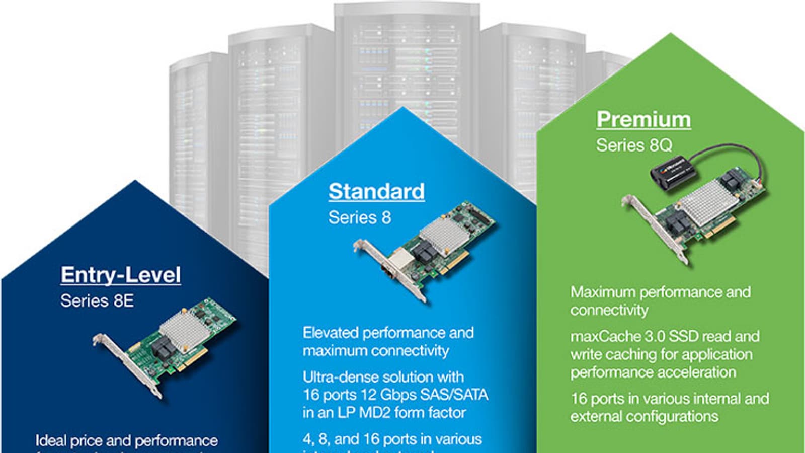 Аппаратная поддержка RAID RAID 0, 1, 10 и скорости 12 Гбит/с на каждом порту позволяют использовать адаптеры Microsemi Adaptec 8405E и 8805E в серверах и рабочих станциях, предназначенных для работы с базами данных, для редактирования видео, для использования в качестве сетевых видеорекордеров и в других случаях, когда необходима большая пропускная способность. Адаптеры 8405E и 8805E поддерживают гибридные массивы, включающие HDD и SSD.